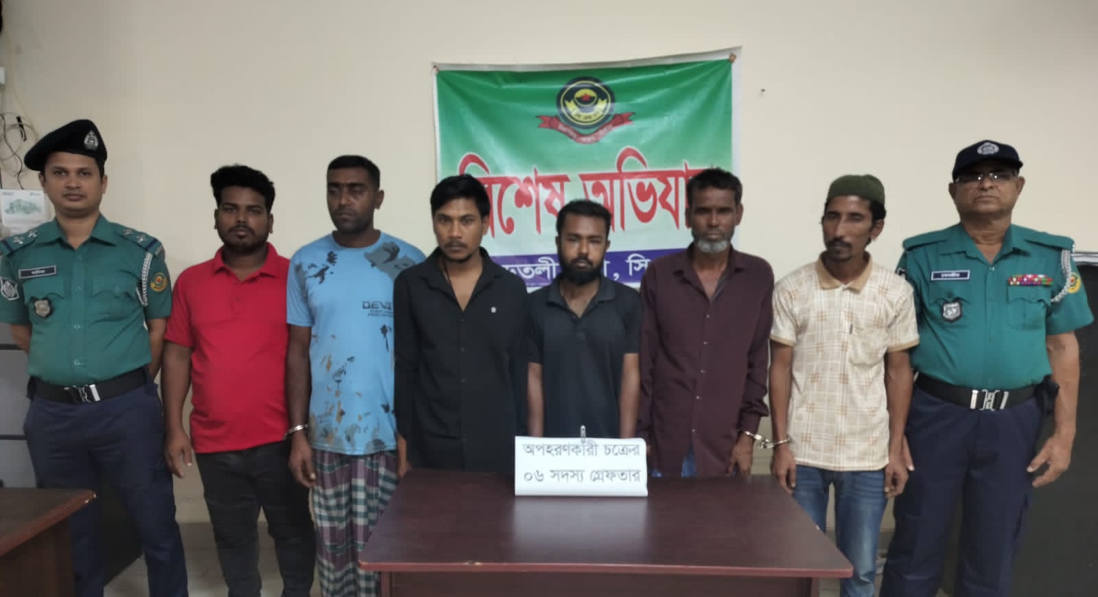 অফিসার ইনচার্জ, পাহাড়তলী থানা, মো: বাবুল আজাদ এর নেতৃত্ব এসআই/মো: জাহেদ উল্লাহ জামান, এসআই আওলাদ হোসেন সঙ্গীয় ফোর্স সহ ২৬ মার্চ সময় ১০.২০ ঘটিকায় পাহাড়তলী থানাধীন স্টেডিয়াম রোড রুপালী আবাসিক এলাকার গেইটের সামনে রাস্তায় অভিযান পরিচালনায় অপহরণ চক্রের সদস্য (HR871) ১। মোঃ রোমান উদ্দিন(৩৩), পিতা-মৃত নুরু ছাপা, মাতা-জাহানারা, সাং-পূর্ব বড় ভিউলা, ওয়ার্ড নং-০৬, ব্রাহ্মনপাড়া, থানা-চকরিয়া, জেলা-কক্সবাজার বর্তমানে-রুপালী আবাসিক স্টেডিয়াম দক্ষিণ পার্শ্বে, রফিক সাহেবের ভাড়াঘর, থানা-পাহাড়তলী, জেলা-চট্টগ্রাম, (HR86J) ২। মোঃ সাগর(২৮), পিতা-মোঃ মিরাজ, মাতা-মৃত মমতাজ বেগম, সাং-বয়ারগুদীঘাটা, চায়ের দোকানদার এর বাড়ী, থানা-পাথরঘাটা, জেলা-বরগুনা বর্তমানে- রুপালী আবাসিক স্টেডিয়াম দক্ষিণ পার্শ্বে, শিবুর দোকান, থানা-পাহাড়তলী, জেলা-চট্টগ্রাম, (HR838) ৩। মোঃ হাতেম(৩২), পিতা-নুরুল হুদা, মাতা-রাবেয়া খাতুন, স্থায়ী সাং-বড়ঘাগু টিয়া, ইদু মিয়ার বাড়ীর পার্শ্বে, বকুল মিয়ার বাড়ী, থানা-বাজিতপুর, জেলা-কিশোরগঞ্জ বর্তমানে- রুপালী আবাসিক স্টেডিয়াম দক্ষিণ পার্শ্বে, কালাম এর রিক্সার গ্যারেজ, থানা-পাহাড়তলী, জেলা-চট্টগ্রাম, ৪। (B5KW4) রবিউল আলম (২৭), পিতা- মোঃ আবুল কালাম, মাতা- আমেনা বেগম মোবাইল :০১৮৭৮-১২৫১৭৬; এনআইডি- ৫১০৬৪১১৩৩২ স্থায়ী : (নারায়নপুর, জামাল সরকারের বাড়ী) , উপজেলা/থানা- তিতাস, জেলা -কুমিল্লা, বাংলাদেশ বর্তমান : (সাগরিকা স্টেডিয়াম এর পিছনে, রূপালী আবাসিক এলাকা, কামালের ভাড়াঘর) , উপজেলা/থানা- পাহাড়তলী, জেলা -চট্টগ্রাম, বাংলাদেশ, ৫। (9UJS9) আবুল কালাম (৪৬), পিতা- মৃত- আঃ খালেক (সাং-নারায়নপুর (জামাল সরকারের বাড়ী),) , উপজেলা/থানা- তিতাস, জেলা -কুমিল্লা, বাংলাদেশ, ৬। (JMFM9) মোঃ আনোয়ার হোসেন (৪০), পিতা- মৃত আবদুল রব, মাতা- সেমন আফরোজ, স্থায়ী : গ্রাম- পূর্ব মায়ানী ঘোনা (পন্ডিত বাড়ী ) , উপজেলা/থানা- মীরসরাই, জেলা -চট্টগ্রাম, বাংলাদেশকে গ্রেফতার পূর্বক অপহরণ কাজে ব্যবহৃত একটি সাদা রংয়ের টয়োটা এলিয়ন প্রইভেটকার এবং ভিকটিম মোস্তাফিজুর রহমান হইতে জোরপূর্বক আদায়কৃত অর্থ হইতে ১,৫০০/- টাকা উদ্ধার করা হয়।