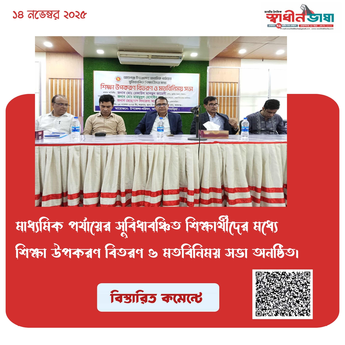 মাধ্যমিক পর্যায়ের সুবিধাবঞ্চিত শিক্ষার্থীদের মধ্যে শিক্ষা উপকরণ বিতরণ ও মতবিনিময় সভা অনুষ্ঠিত।