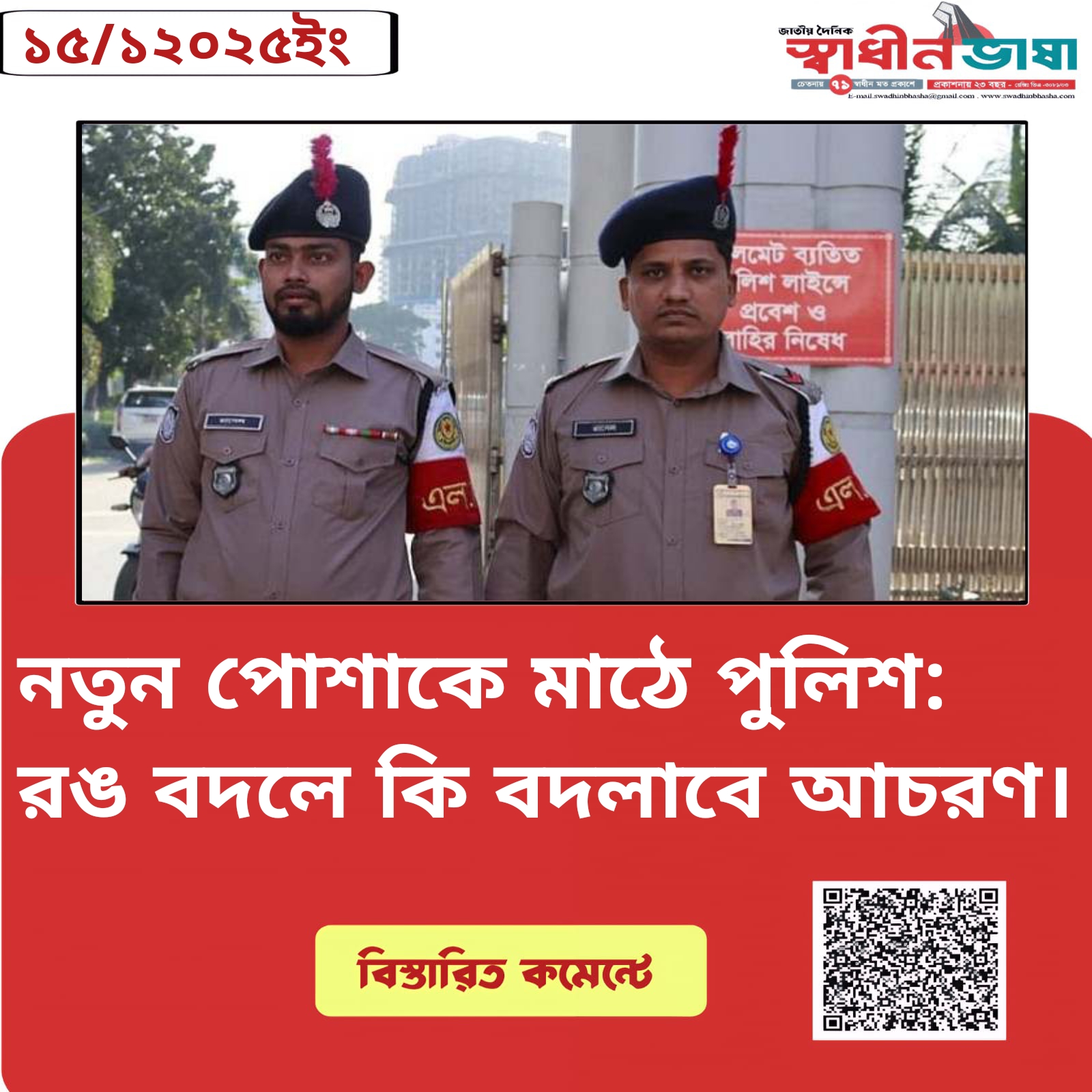 পোশাকের লৌহ রঙ—ধাতুর মতো ঠান্ডা, শৃঙ্খলার মতো কঠোর। কিন্তু মানুষ আশা করে পুলিশ হবে আশ্বাসের ছায়া, পাহারাদারের নিঃশব্দ হাত। রঙ বদলে সেই হাত নরম হবে নাকি আরও কঠোর—এ প্রশ্নের উত্তর সময়ই দেবে।