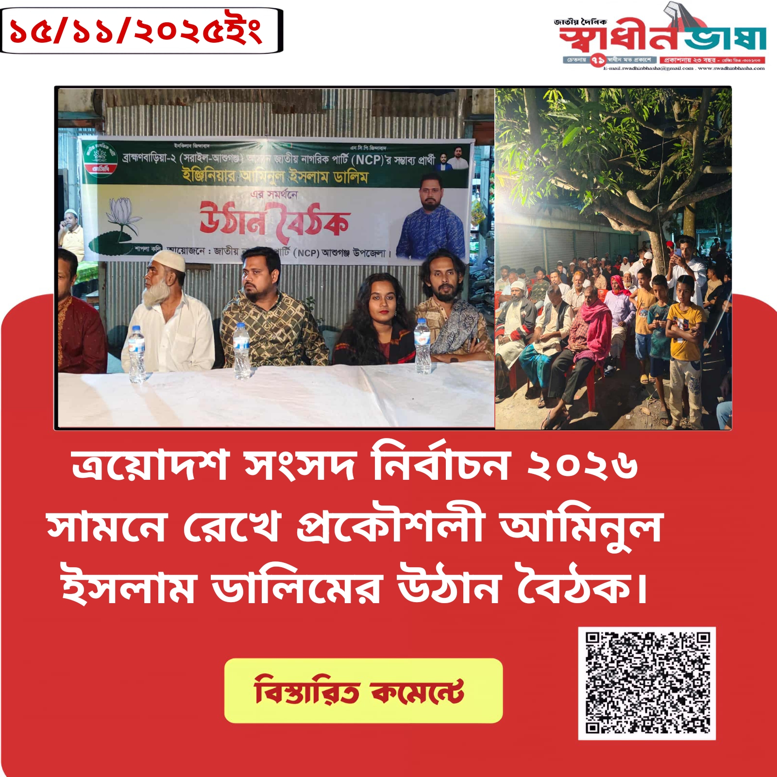 আজকের এই উঠান বৈঠক অত্যন্ত গুরুত্বপূর্ণ এবং তথ্যবহুল। আমি বিশেষভাবে ধন্যবাদ জানাতে চাই আমাদের আজকের প্রধান অতিথি আশুগঞ্জ উপজেলার প্রধান সমন্বয়কারী ও সম্ভাব্য প্রার্থী প্রকৌশলী আমিনুল ইসলাম ডালিম সহ সকল অতিথিবৃন্দদের পাশাপাশি, আজকের অনুষ্ঠানে যারা অংশগ্রহণ করেছেন, তাদের প্রত্যেককে তাদের সক্রিয় অংশগ্রহণের জন্য আমার আন্তরিক ধন্যবাদ।