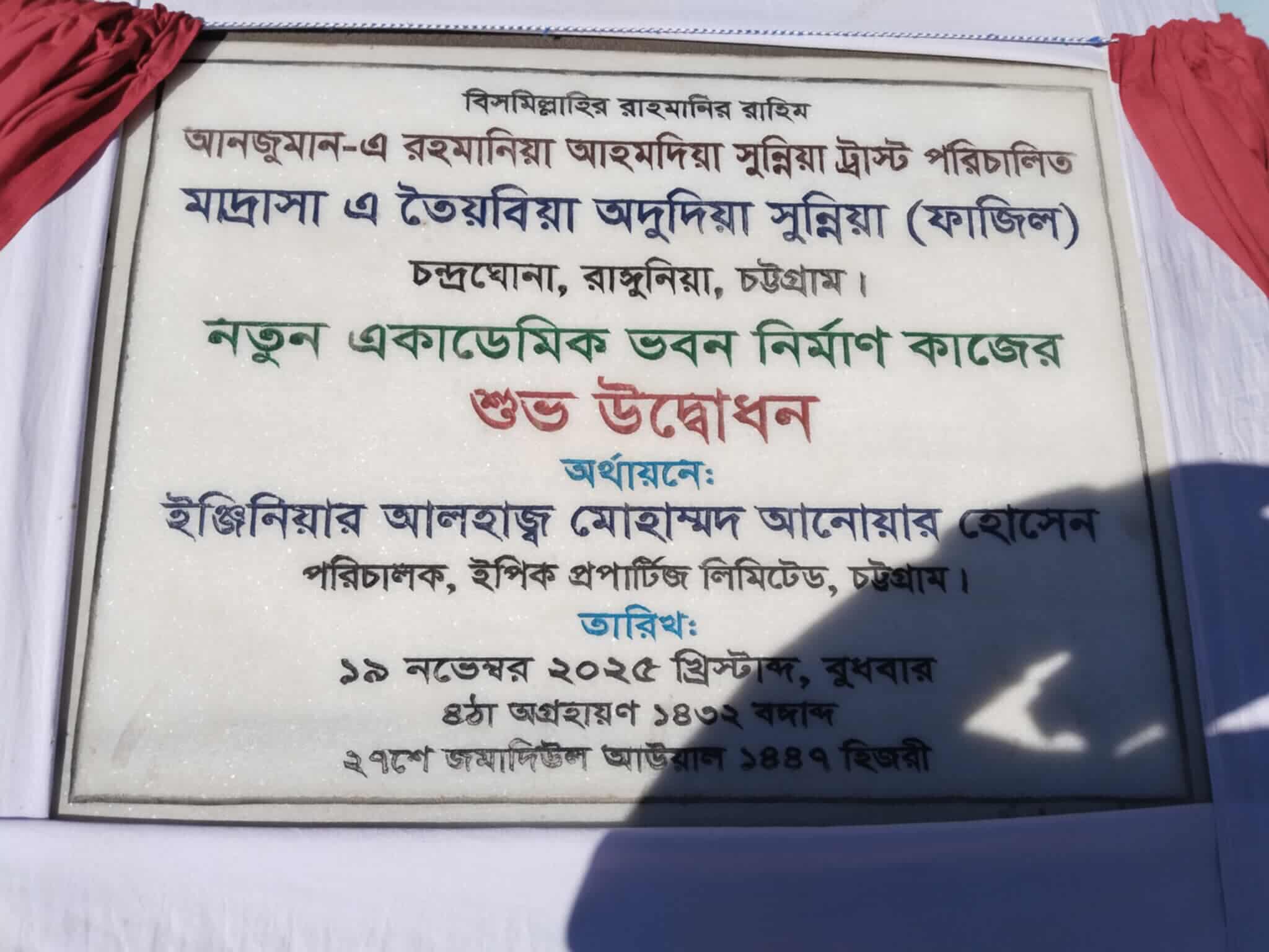 মাদ্রাসা এ তৈয়্যবিয়া অদুদিয়া সুন্নিয়া (ফাজিল)-এর নতুন বহুতল একাডেমিক ভবন নির্মাণকাজের উদ্বোধন
