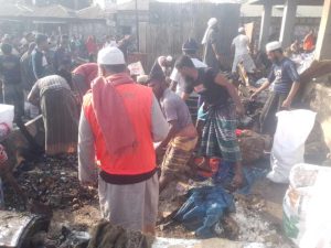 মনপুরার বাংলা বাজার গভীর রাতে আগুন লেগে ৭ দোকান পুড়ে ছাই